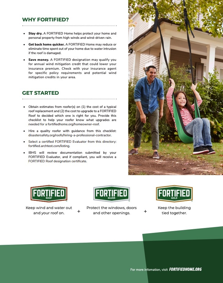 FORTIFIED standards were developed by the Insurance Institute for Business & Home Safety (IBHS) through decades of testing and research. - Third-Party Verification